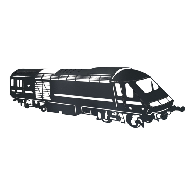 Introducing our meticulously crafted Class 43 Train Wall Art, measuring 43cm wide by 16cm high. Designed and produced in-house, this durable piece features a sleek Satin Black finish with both an undercoat and top coat, making it perfect for indoor or outdoor display.