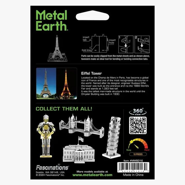 Metal Earth is made from high-quality steel sheets. Each model features amazing detail with parts cut from one or more 4” square steel sheets. Easy-to-follow instructions are included with each kit and no glue or solder is required! Snip out the pieces and bend the tabs through corresponding connection points.