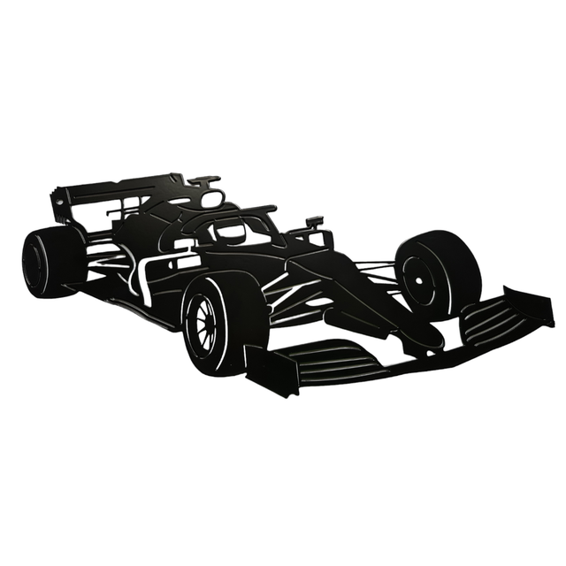 Add a sleek, modern touch to your space with this hand-crafted F1 Car metal Wall Art. Measuring 42cm wide and 21cm tall, it features a durable satin black powder-coated finish on both sides, allowing versatile display options indoors or outdoors.