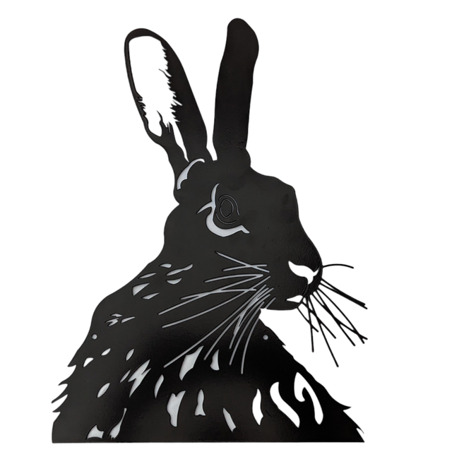Add a striking touch to your décor with this meticulously crafted metal Wall Art Hare measuring 29cm wide by 43cm tall. Designed and produced by us, this sturdy piece features a satin black finish with both an undercoat and top coat, making it perfect for indoor or outdoor display.